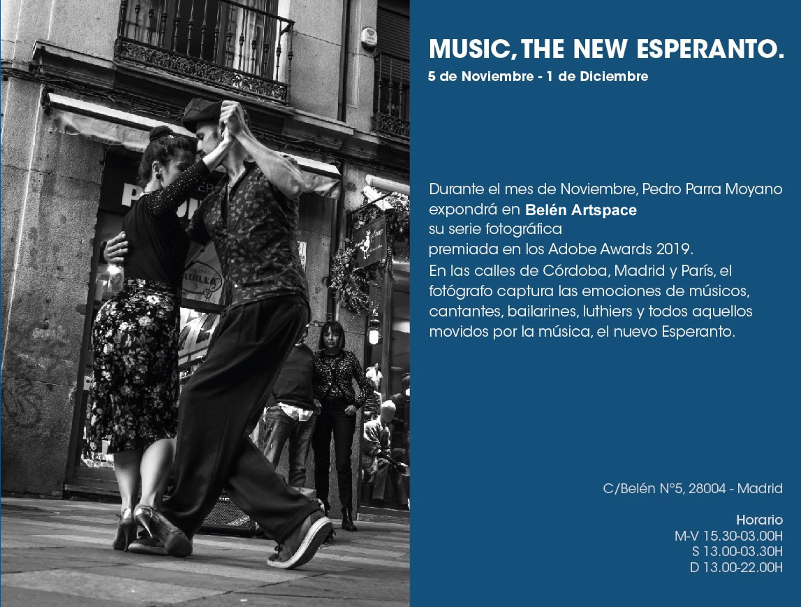 Estas fotografías, tomadas entre 2018 y 2019 pretenden capturar la presencia de la música en las calles de todo el mundo. Y es extremadamente complicado hacerlo, porque la fotografía no puede capturar el sonido, pero puede capturar emociones. Emociones de todo el mundo, porque la música no sólo mueve a músicos, también apasiona a bailarines y luthiers, y sobre todo oyentes. Oyentes cómo tú y cómo yo, no importa de dónde vengan o a dónde vayan, no importa su nivel de educación o su religión. Lo único que importa es que están dispuestos a abrir su corazón y disfrutar de la música, el nuevo esperanto.”