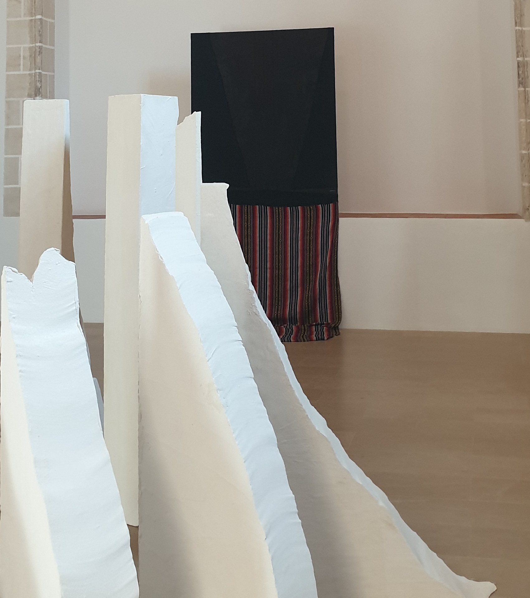 Comisariado por Inés Alonso y Nuria Delgado las exposiciones pretenden ser un nexo entre pasado y futuro. Memorias presenta un conjunto escultórico con piezas de cal con formas ascendentes de José Delgado Periñan mientras Alfredo Copeiro combina pintura y textil en su obra que hace un guiño especial a los tejidos de la Castilla La Mancha.