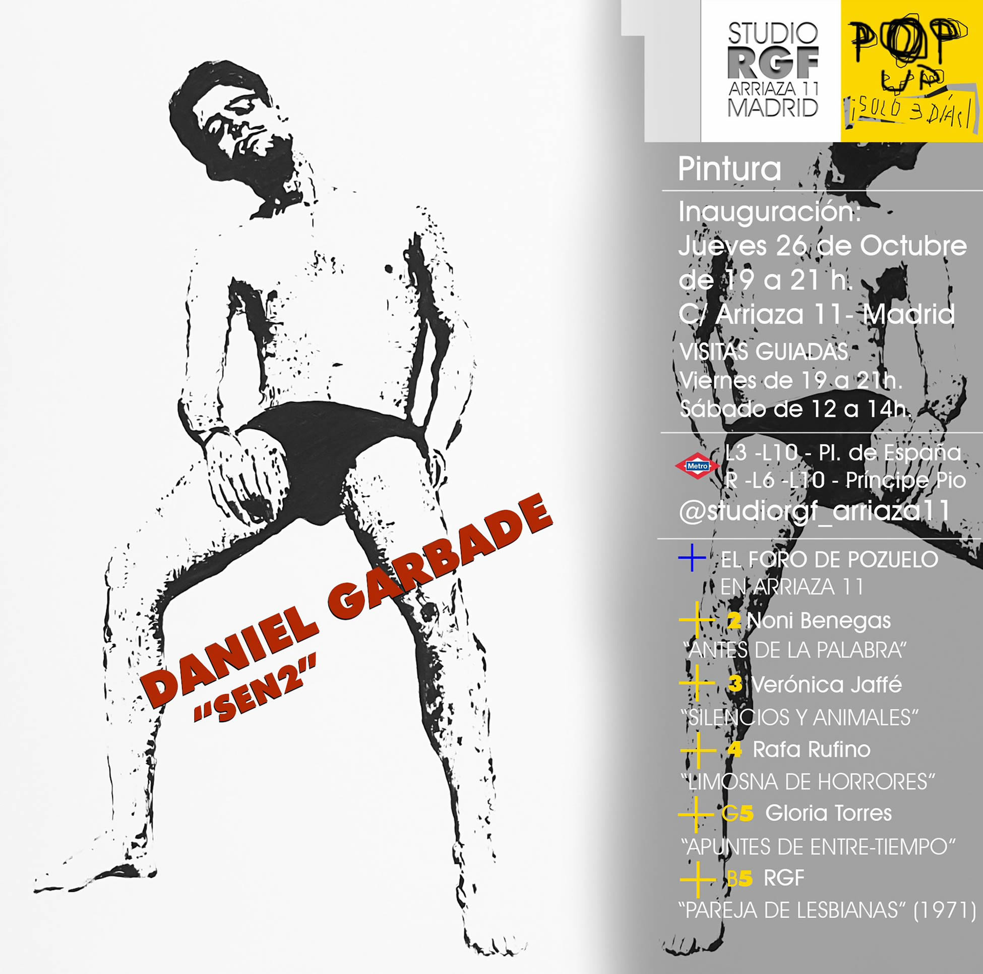 Junto con las obras de Roberto González Fernandez con: “Parejas de lesbianas” (1971), de Noni Benegas con ” Antes de la palabra“, Verónica Jaffé con “Silencios y Animales, Rafa Rufino con “Limosna de Horrores” y Gloria Torres con “Apuntes de entre-tiempo” El artista suizo Daniel Garbade propone :”En Sendos“.