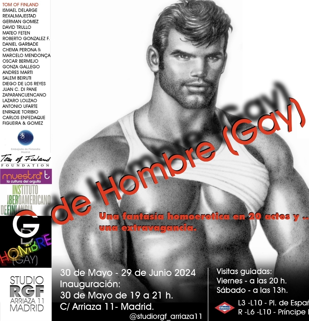 Durante cinco semanas en StudioRGF Arriaza11 , Madrid profundiza, sin ánimo de ser exhaustivos, sobre el amplísimo espectro de las fantasías homoeroticas, a través de microexposiciones de artes plásticas, incluyendo pintura, dibujo, collage y fotografía, y un homenaje extravagancia al maestro Tom of Finland, un proyecto del Instituto Iberoamericano de Finlandia en Madrid con el patrocinio de la Embajada de Finlandia, comisariado por Tero Puha y con la participación del mismo Tero Puha y Edith Hammar como herederos de Touko Laaksonnen ( Tom of Finland ).